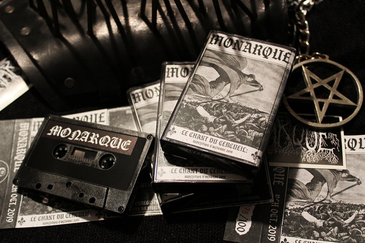 Le Chant du Cercueil", une cassette 'rehearsal' enregistrée en préparation du concert pour la Messe des Morts 2019. Strictement limitée à 100 exemplaires numérotés, elle contient 6 pièces du black metal le plus pur. Chaque copie contient un 'sticker' du logo de Monarque.